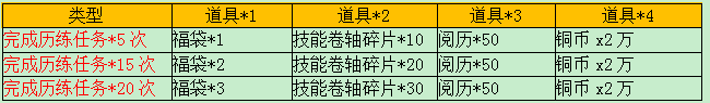 【活动内容】玩家完成历练任务即可领取丰厚奖励!