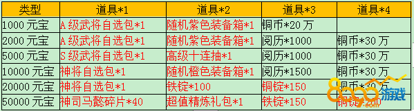 【活动内容】活动期间,每累充5000元宝,龙胆赵云碎片*5(限领取8次)。