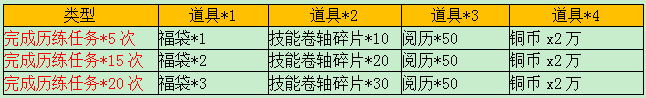 【活动内容】玩家完成历练任务即可领取丰厚奖励!