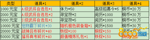 【活动内容】活动期间,玩家可以消耗元宝或者绑元购买道具。