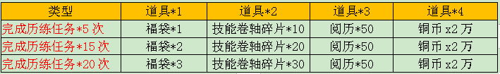 【活动内容】玩家完成历练任务即可领取丰厚奖励!