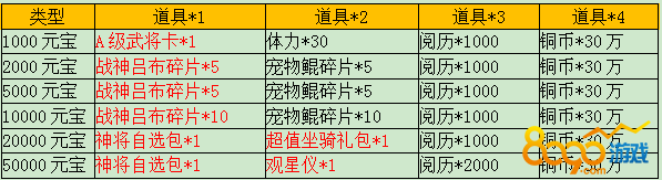 【活动内容】活动期间,每累充5000元宝,即可齐天诸葛亮碎片*5+体力*30(限领取8次)