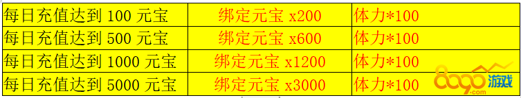 【活动内容】活动期间,玩家每日充值达到指定金额即可领取奖励。