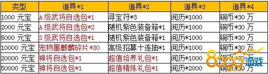 【活动内容】活动期间,玩家累积充值达到指定金额,即可领取丰厚奖励!