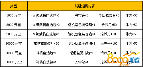 【活动内容】活动期间,玩家累积充值达到指定金额,即可领取丰厚奖励。