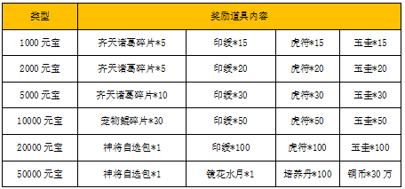 【活动内容】活动期间玩家可以消费元宝购买道具