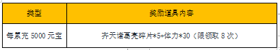 【活动内容】活动期间,玩家累积充值达到指定金额,即可领取丰厚奖励。