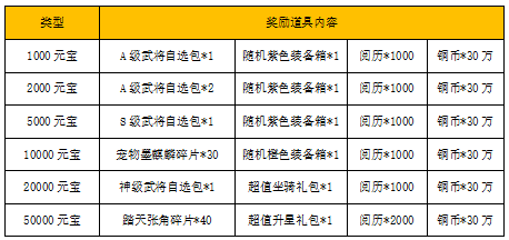 【活动内容】活动期间,玩家累积充值达到指定金额,即可领取丰厚奖励。