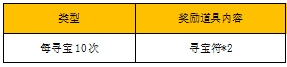 【活动内容】活动期间,玩家每寻宝10次,可以免费领取2张寻宝符(无限领取)