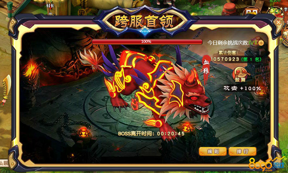 2. 每个玩家每天有3次免费挑战的机会,次数不可累计,挑战次数用完后可以花费100元宝购买次数(每次购买价格不变,次日清空,购买次数不保留)