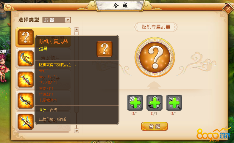 3. 点击合成按钮,玩家也可将获得的装备武器合成专属装备,真是好处多多