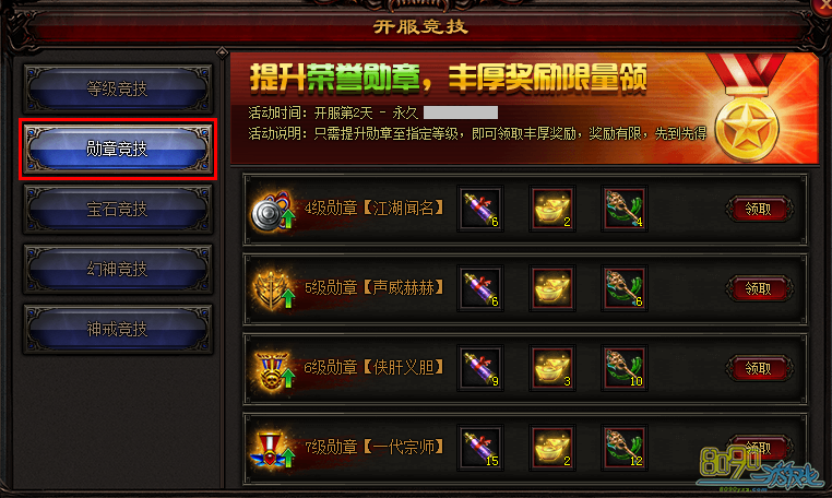 活动说明:只需提升勋章至指定等级,即可领取丰厚奖励,奖励有限,先到先得