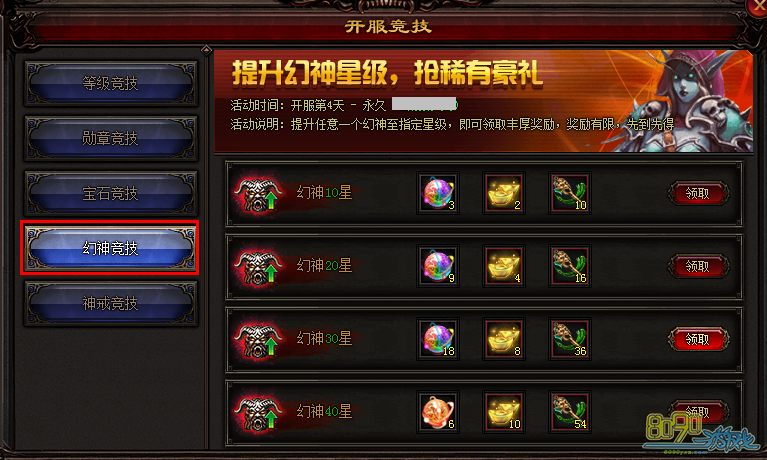 活动说明:只需提升任意一个幻神至指定星级,即可领取丰厚奖励,奖励有限,先到先得