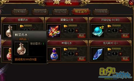 打架PK总能出现红名的,为了避免不必要的损失,早日清除掉红名是非常有必要的,但是红名清除在雷霆之怒中还是非常简单的了。在商城的绑金商城中只要60W就能消除300点了。一般杀一个人会涨100点,杀3个人才需要60W还是很方便的呢。