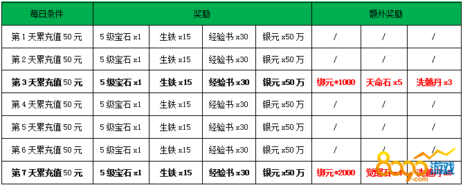 【活动内容】活动期间,每日累计充值达到指定额度即可领取对应奖励,累充满3、7天还有额外奖励。