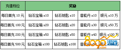 【活动内容】活动期间,每日首冲达到指定档次即可领取对应奖励。