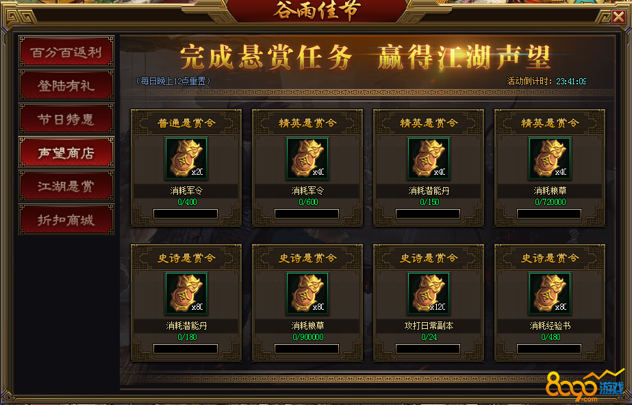 【活动内容】活动期间,完成指定任务即可获得对应奖励的江湖声望。