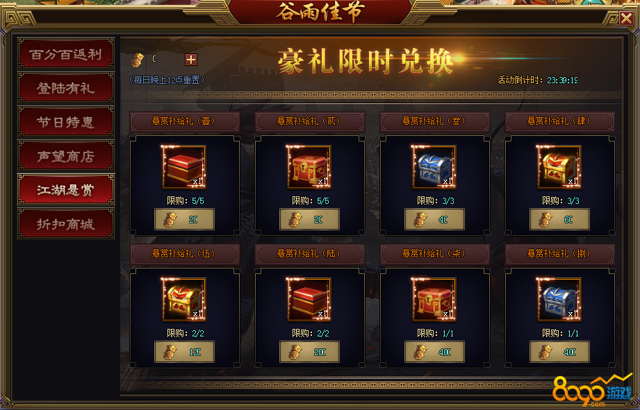 【活动内容】活动期间,可使用江湖声望兑换限时豪礼。