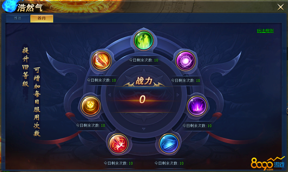 2.炼体丹分为7种,对应7种属性,每天使用的次数会有限定。