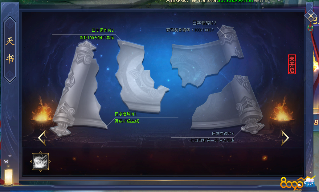 1.玩家完成47级的主线任务后,开启天书系统,天书系统有七个书卷
