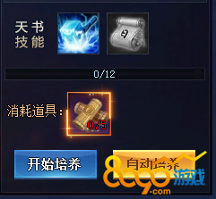 点击【开始培养】按钮,消耗“天书残卷”进行天书升段