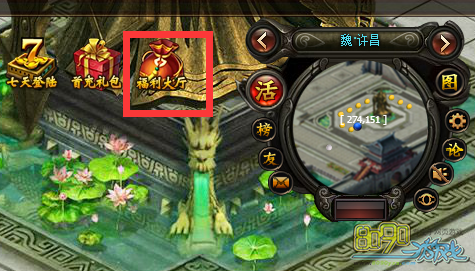 【步骤1】进入游戏,点击右上角“福利大厅”按钮。