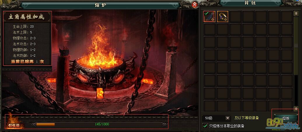 1,每件角色装备都可以进行熔炼,熔炼后会产生一定的熔炼值