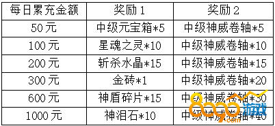 1、每日累充——在活动期间内,每日充值指定金额,即可领取对应档位当日的累充奖励。