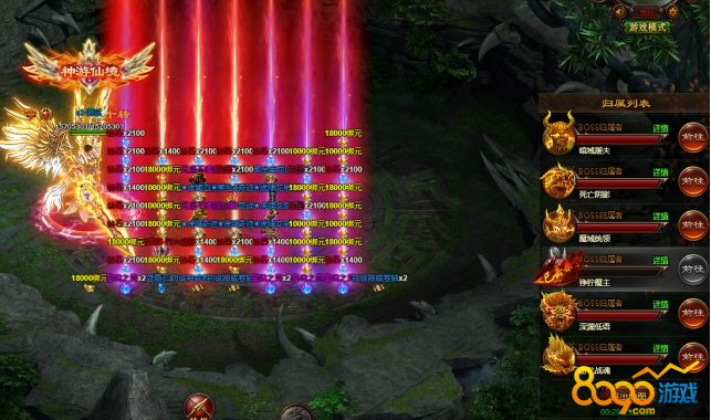 玩法简介:1.活动开启后,地图内刷新6只boss,对boss造成伤害最高的服获得此BOSS的归属权,boss被击杀后,boss归属权所在服的全体玩家获得拾取资格。