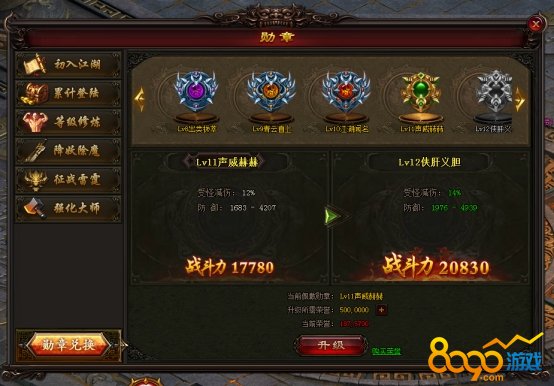 获得:使用荣誉值进行勋章等级的提升