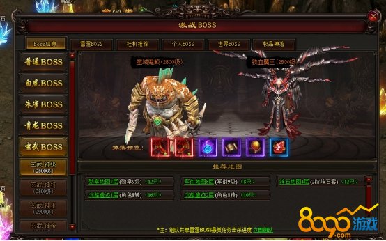 种类:普通BOSS、白虎BOSS、朱雀BOSS、青龙BOSS、玄武BOSS、神龙BOSS。