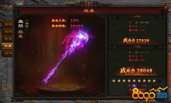 作用:激活狂暴后提供暴击率、暴击伤害属性的提升。