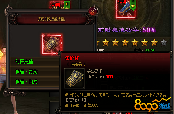 搜索"8090网页游戏"在我们雷霆之怒网页游戏里,有一种保护符是我们变强的秘密武器,很多新手玩家对保护符不了解的,下面就跟着小编一起来认识下吧。