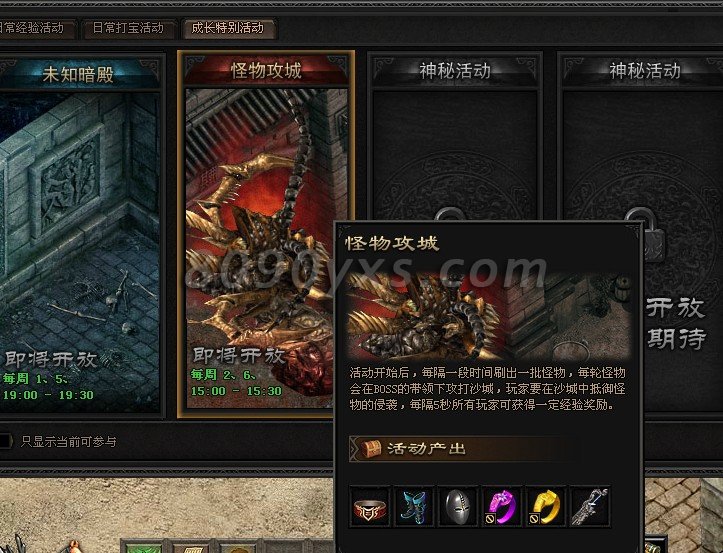 搜索"8090网页游戏"在8090龙纹战域里有一个 周二和周六才有的活动“怪物攻城”。