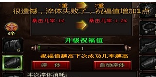 好多朋友应该看到了升级祝福值,我一开始以为是有神马辅助道具可以提升,但是在淬体的过程中才发现,祝福值是每次失败之后才会增长,