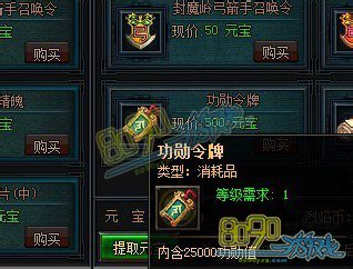 打开烈焰商城就能看到一个功勋令牌放在那边,500元宝一个,使用后可以增加25000功勋值,功勋值可是兑换官阶称号的必须拼,功勋值越高也就能领取更高的官职,也就意味着能领取更高攻击的BUFF。