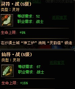 灵符能够带给玩家巨大的生命值,并且战士、道士、法师三职业的生命值加成不同,但越是高级的灵符血量加成越是丰厚。