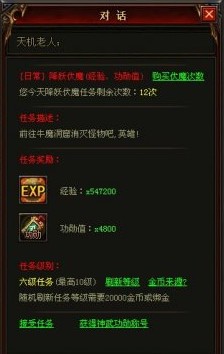 在《烈焰》中,伏魔降妖是每天都可以做的任务,这样《烈焰》玩家们可以每天都获取到一定量的经验。《烈焰》玩家们如果想要做降妖伏魔任务的话,首先必须要去到天机老人那里,他会把玩家们直接传送到烈焰城。