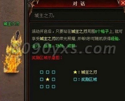 活动的规则很简单,只要站在城主之刃周围8个格子上,即可享受城主之刃的荣光照耀,并每5秒免费获得大量烈焰经验、绑定金币、战魂、功勋、成就积分。关键是你要看准时间哦,第一时间冲过去占位置,别被挤得没地儿站了。另外城主之刃还能获得烈焰币,这等同于充值获取的元宝哦,可以购买游戏中的热门道具等等。大量经验、金币也是轻松获取的。