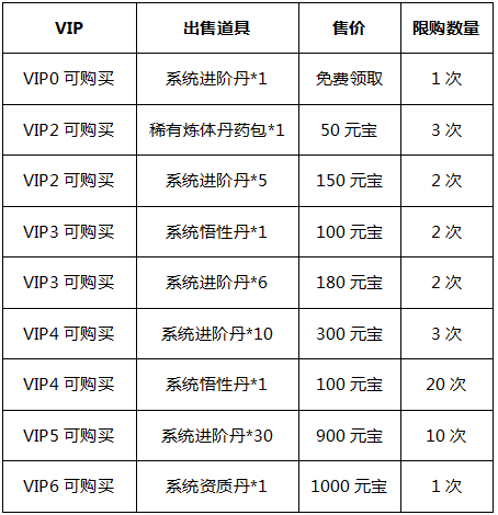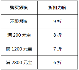 【活动说明】:活动期间,根据玩家VIP等级,可购买相应道具,购买额度越多,折扣越大。