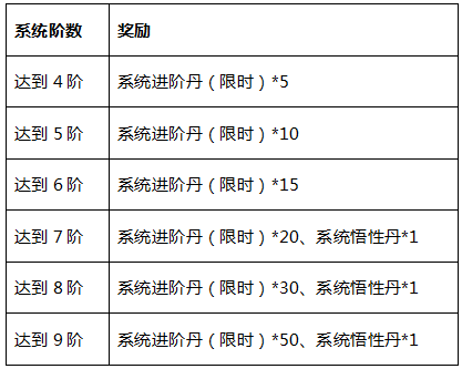 【活动说明】:活动期间,根据活动主题,玩家升阶相应系统达到相应等阶,可领取对应进阶返还奖励。