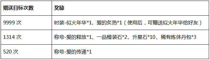 1、 活动期间,玩家赠送“飞花”或“烟花筒”,可获得土豪值。被赠送的玩家可获得魅力值。土豪值和魅力值将进行排行,排行前10的玩家可获得排行奖励