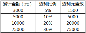 单日累计充值金额满足以下条件即可申请返利元宝