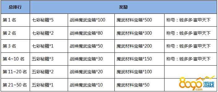 2、根据获得的积分,排名前50名的玩家可获得排行奖励。