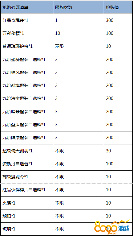 【活动说明】:活动期间,玩家消耗 1个超级抢购券 可以参与抢购专场抽奖,随机获得奖励。同时,每次抢购随机可获得1-3点抢购值,抢购值越高,越有几率获得抢购清单内的奖励