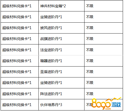 【活动说明】:活动期间,玩家可使用超级材料兑换卡兑换各类材料。