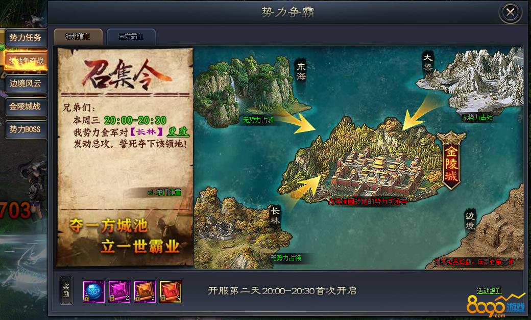 搜索"8090网页游戏"每个游戏都有属于自己的比较有意思的活动,当然了在琅琊榜之风起长林也不列外,其中领土争夺战就是一个比较有意思的活动,那么这个活动的规则和奖励是什么呢?