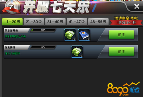 活动内容:创号一周轻松达到50级,在这50级内可以获得4次机会免费领取精英或杰出球员,让你带领豪华球员阵容轻松闯关。