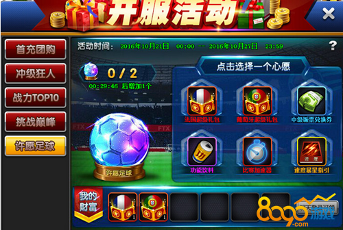 活动内容:许愿足球点击选择一个心愿即可免费获得海量道具还有饭卡,次日登录即可领取,就是这么壕!
