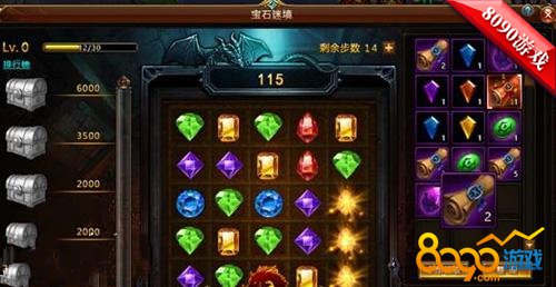 每一次成功消除后,右侧会增加奖励物品,当积分达到500、1000、2000、3500、6000时,会解锁相应的宝箱,宝箱中拥有黄金袋、兽魂石、宝石箱、时装升星石等丰富作战物资,供玩家使用。另外,每周积分排名第一的玩家将得到“宝石达人”的稀有称号,绝对限量!